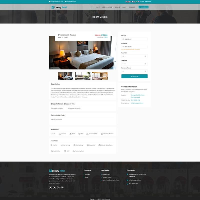 Hotel Website is a complete hotel booking and room reservation solution built with Software Framework PHP Laravel, perfect for anyone looking to launch a professional hotel business on their website.